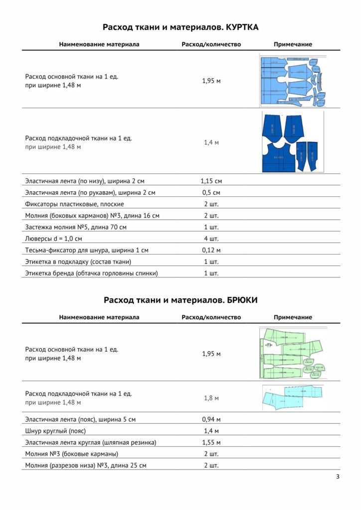 - Расход материалов: расчет необходимого количества ткани и фурнитуры для пошива изделия.